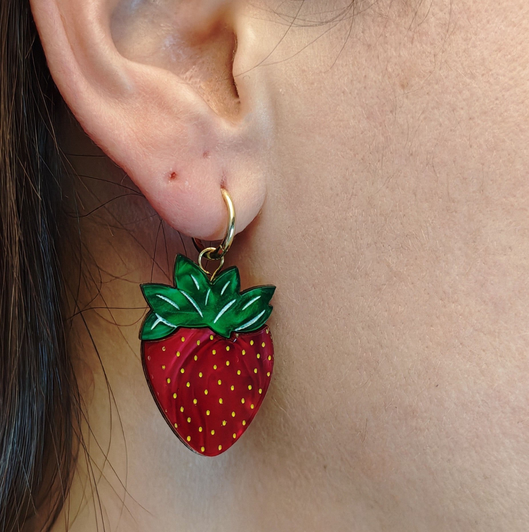 Inspired by the effortless beauty of a classic dessert, these strawberry earrings are as 'aesthetic' as they are charming. This colourful set is the perfect way to brighten your mood and bring a whimsical, sun-drenched vibe to any outfit.